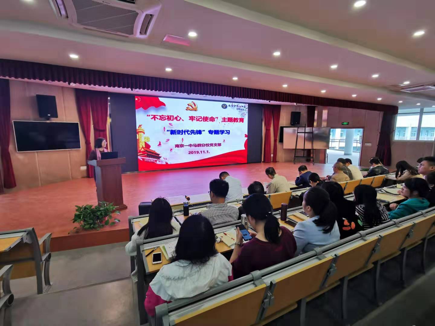 11月1日中午,南京一中马群分校党支部组织全体党员开展了“不忘初心、牢记使命”主题教育之“新时代先锋”专题学习。此次学习,我校党支部组织党员观看了《初心》视频。该视频回顾了中国一代又一代共产党人的奋斗历程,回顾了恽代英、周恩来、吴仁宝、赵亚夫等共产党员的事迹。无论是战争年代,还是新中国成立后,中国永远不会缺乏不舍初心为人民谋取幸福的共产党人。他们永远为中华民族复兴的巨轮,指引着前进的方向。