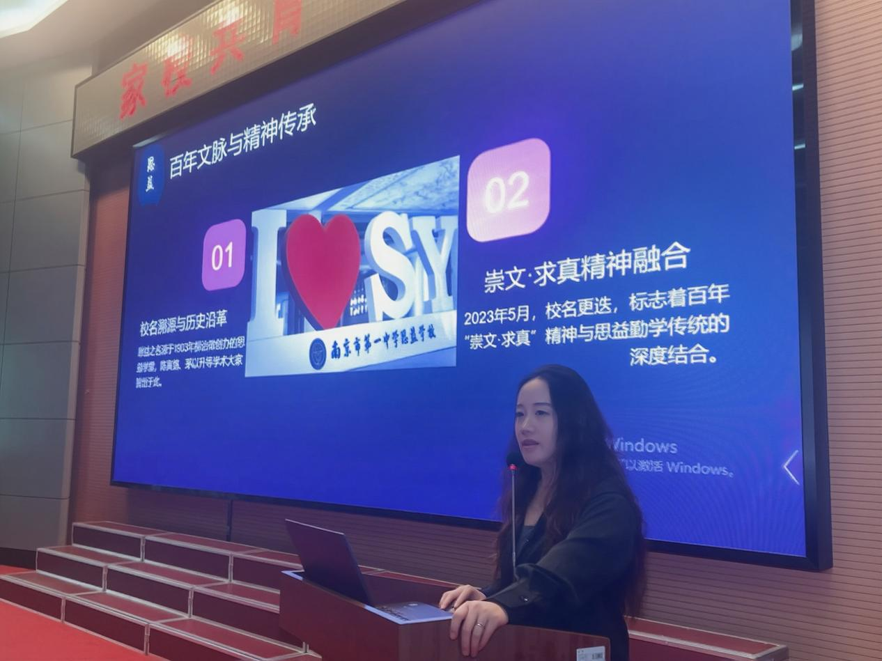 最后,一中思益何娴校长总结发言。她以“思接百年育新蕊,益路同心向未来”为主题,从四个层面展开介绍。“传承・创新” 阐释了学校在百年文脉滋养下的发展与革新;“阳光・公平” 解读了新政下学校秉持公正理念、营造健康生态的实践;“启航・护航” 介绍了初一教师团队为学生成长提供的坚实保障;“同心・同行” 则给出了家长陪伴孩子成长的具体建议。何娴校长表示:“思益学校愿以筑梦者的光芒,照亮每一位学子的青春,助力孩子们在一中思益这片蓝天下,舒展羽翼,搏击长空,成长为崇文求真、全面发展的时代新人!”