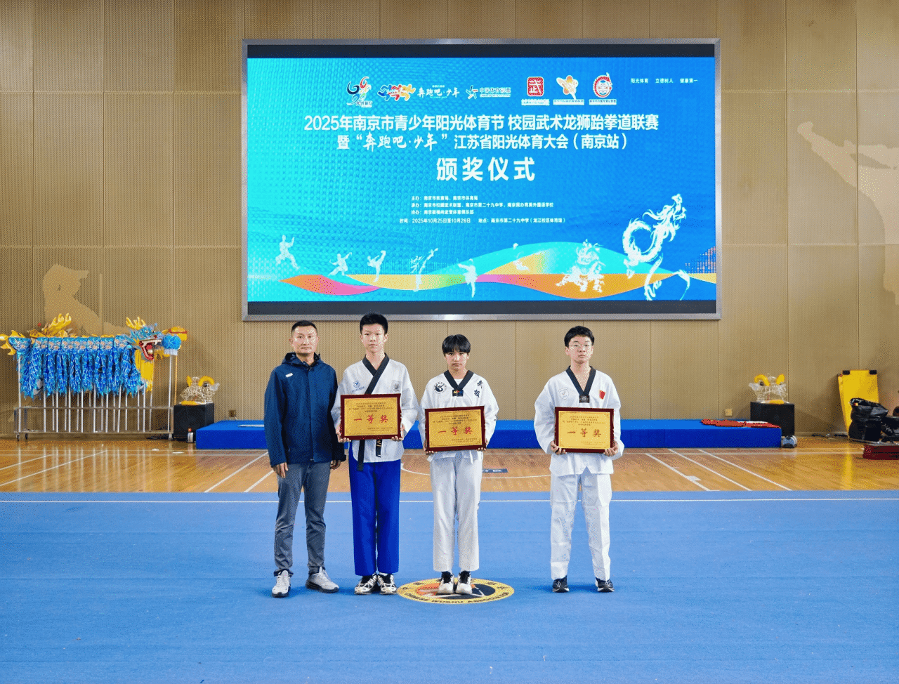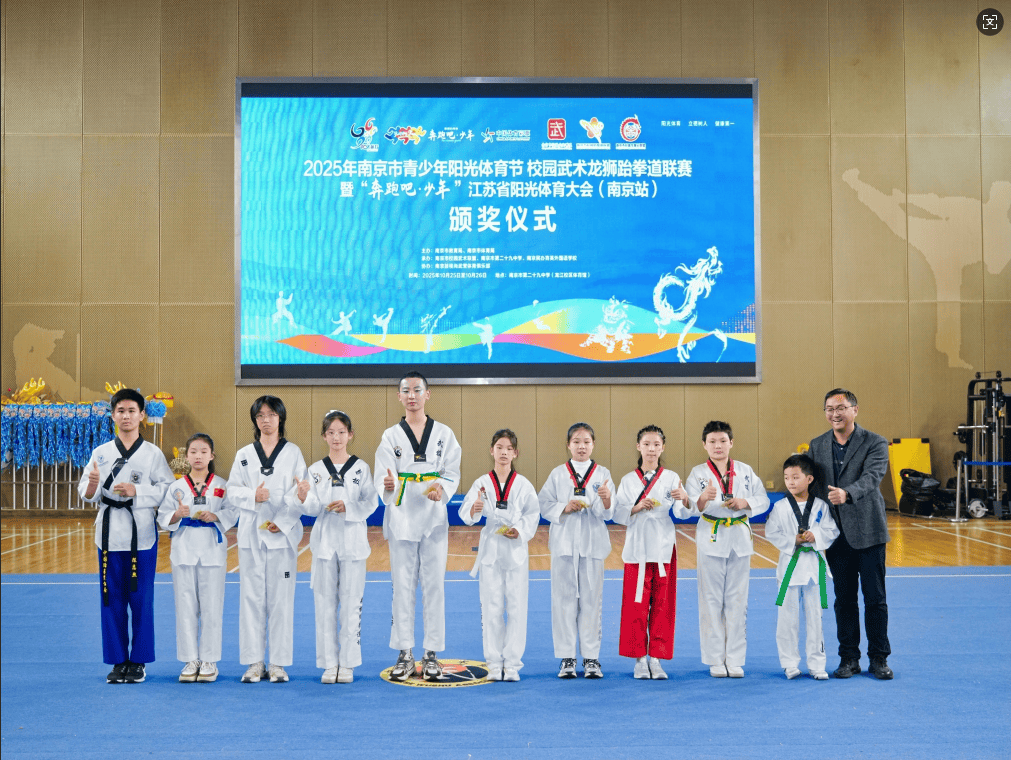 2025年10月26日,南京市阳光体育节跆拳道比赛项目在南京市第29中学圆满落下帷幕。我校学生凭借顽强的拼搏精神、精湛的技术和卓越的团队协作,在本次比赛中斩获中学组跆拳道品势、跆拳操两项比赛南京市一等奖的优异成绩,我校已连续三年获此殊荣。